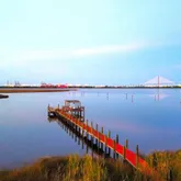 2 Amazing covered porches for entertainment. House is equipped with 2 kitchens one for the pool area. Long...River front dream house, Enjoy the amazing St Johns river views and the Dames Point Bridge. This Beautiful special design historic Arlington round home is built on 1.52 acres and approx 170 ft of river front. Come enjoy the River style living with endless activities Heated pool (new heater), Fishing, Boating, kayaking, 175 ft Zip-line toward the river from the kids tree house, Re marcited pool.