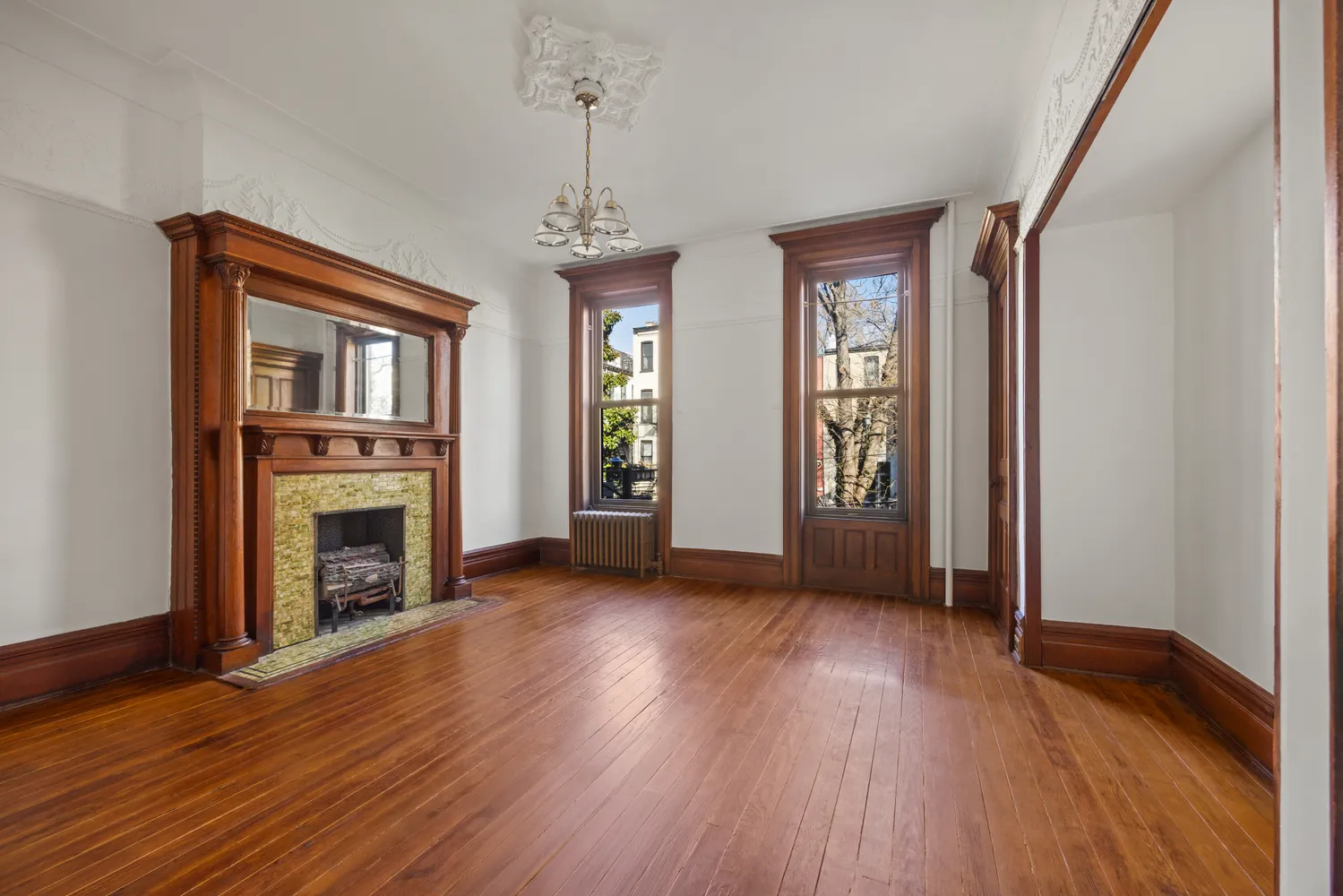 Rich with original details and timeless charm, including beautiful woodwork, decorative moldings, and multiple decorative fireplaces, all complemented by wide-plank hardwood floors and soaring proportions throughout.