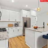- Kitchen Appliances: Dishwasher, Disposal, Free Standing Range, Island, Microwave, Plumbed For Ice Maker, Quartz, Stainless Steel Appliance
