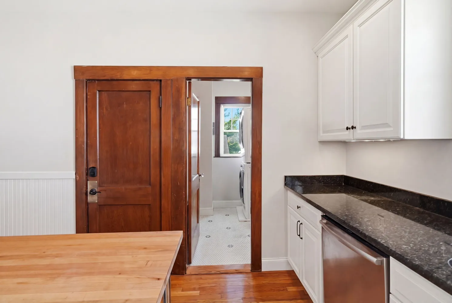 Spacious 3-bedroom, 1.5-bath condo in the sought after Bellevue Hill neighborhood blends classic character with modern comfort. First-floor unit features a bright living room with a French-door sunroom, a distinctive dining room with decorative columns and a built-in china cabinet, and an updated kitchen with stainless steel appliances. Hardwood floors run throughout the unit, and in-unit laundry and keyless entry add everyday convenience. Well-maintained steam radiators and energy-efficient central air keep you comfortable year-round. Outside, enjoy a garage bay ideal for woodworking or furniture restoration projects, plus an additional off-street parking space. Close to transit, shops, and dining.