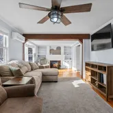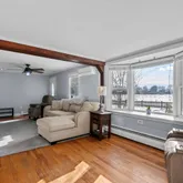 - Room Features: Bay/Bow Window,Beams,Ceiling Fan,Pellet Stove,Hardwood Floor