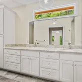 - Interior: Beamed Ceilings, Double Vanity, High Ceilings, Master On Main Level, Tile Bath
