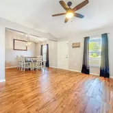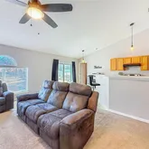 - Interior Features: Cathedral Ceiling(s), Ceiling Fan(s), High Ceilings, Living Room/Dining Room Combo, Open Floorplan, Solid Surface Counters, Solid Wood Cabinets, Split Bedroom, Walk-In Closet(s)