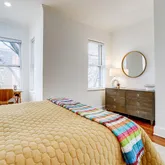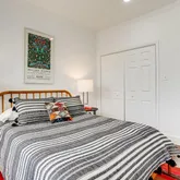 The separate 1BR/1BA basement unit (rented for $1850/mo with CofO and a nice tenant who conveys) has its own washer/dryer, an open plan living/dining area with woodburning fireplace, SMART LIGHTS (see bookshelf for switch) and wood tiled floors, a kitchen with copious cabinets and counters plus a pantry, electric cooking and a terra cotta tile floor. Step down to a bedroom with good closet space and a bathroom featuring a large vanity plus tub.
