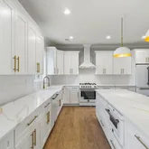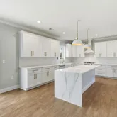 - Kitchen: Center Island, Dec Molding, Quartz, Ceramic Tile, Breakfast Cntr, Floor - Laminate, Sliding Door, Pantry, Eat-In