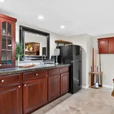 - Appliances: Stainless Steel Appliance(s), Disposal, Microwave, Range Hood, Free-Standing Gas Range, Refrigerator, Gas Water Heater, Bar Fridge