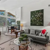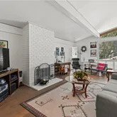 Remodeled interior features engineered wood and ceramic flooring, classic fireplace, nestled book nook, and...Light-filled mid-century post and beam artist's retreat nestled in the hills of the Santa Monica Mountains. Floor-to-ceiling windows and soaring open-beam architecture bring natural light and sweeping views of mature oaks into the main living space. Located south of Ventura Boulevard close to the Woodland Hills Country Club golf course—with quick access to Woodland Hills shops and restaurants.