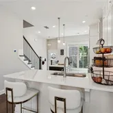 - Kitchen Features: Breakfast Bar, Cabinets White, Solid Surface Counters, Eat-in Kitchen, Kitchen Island, View to Family Room