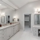 Taj Mahal Quartzite countertops and backsplash throughout
