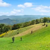 water. With updated appliances and bathrooms, a stone fireplace, and decks/porches for overlooking the scenery, Golden Pond Hideaway is a playground for adults and kids alike. The Cabin by the Pond, with one bedroom and one bathroom, offers cozy features and a small pond, and overlooks usable yards and the mountains beyond. The Cabin in the Woods offers two bedrooms and two bathrooms, porches, and a meandering stream. Other structures included a charming farmhouse, a large barn with an