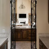 Authentic clay tile roofing. Impressive two-story colonnade featuring dramatic archways and graceful arched windows. Wrought iron detailing. Expansive covered loggias. Striking columned Entry Foyer. Formal dining or seating area featuring soaring ceilings and wet bar. STUNNING...Prepare to be wowed. Discover this extraordinary Mediterranean masterpiece nestled in one of Franklin's most coveted gated neighborhoods. This stunning estate seamlessly blends Old World elegance with modern sophistication.