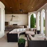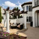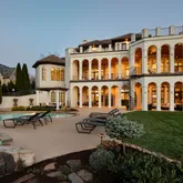 Authentic clay tile roofing. Impressive two-story colonnade featuring dramatic archways and graceful arched windows. Wrought iron detailing. Expansive covered loggias. Striking columned Entry Foyer. Formal dining or seating area featuring soaring ceilings and wet bar. STUNNING Northwest sunset views. Elevator to all floors. Five bedrooms all with full ensuite bath. Powder Room on all floors. Upper level Flex Room with kitchenette and terrace. Heated saltwater gunite pool with tanning ledge. Meticulously maintained landscaping and grounds. Outdoor kitchen with 5 burner gas grill and flagstone bar. Wine Cellar. Theater Room. Fitness Room with sauna and steam shower.