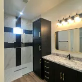 - Accessibility Features: Accessible Door 32in+ Wide, Zero-Grade Entry, Mltpl Entries/Exits, Lever Handles, Hard/Low Nap Floors, Bath Roll-In Shower, Bath Raised Toilet, Accessible Hallway(s)