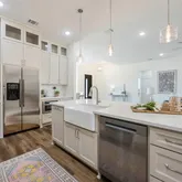 - Room Features: Breakfast Bar, Built-in Cabinets, Eat-in Kitchen, Farm Sink, Kitchen Island, Natural Stone/Granite Type, Pantry, Second Pantry, Solid Surface/Non-Natural Type, Walk-in Pantry, Water Line to Refrigerator