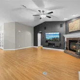 Fall in love with the huge island kitchen--a chef's dream with granite countertops, floor-to-ceiling cabinetry, and ample pantry space. All appliances are included! The home features vaulted ceilings, a split-bedroom floor plan, and ceiling fans throughout. The master suite offers a large walk-in closet and a luxurious bath with a jetted tub, separate shower, and dual sinks. The guest bath includes a tub/shower combo and granite counters. Enjoy convenience with a spacious laundry room featuring extra cabinets, a storage closet, and a laundry tub. The great room is perfect for relaxing or entertaining, complete with a built-in entertainment center and a wood-burning fireplace. Outdoor Living: