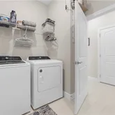 Upgraded laundry room with large sink and ample workspace,