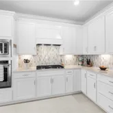 Crown molding in the living room and primary bedroom,