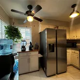 - Room Features: Built-in Cabinets, Eat-in Kitchen, Kitchen Island, Natural Stone/Granite Type, Solid Surface/Non-Natural Type, Utility in Kitchen, Water Line to Refrigerator