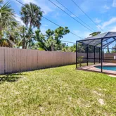 A large screened-in pool and spacious pool area
