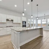 shower. The kitchen features granite countertops and built in microwave & oven. The oversized kitchen island is open