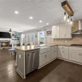 - Kitchen Features: Breakfast Bar, Cabinets White, Pantry Walk-In, Stone Counters, View to Family Room