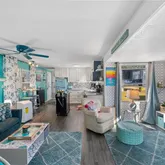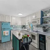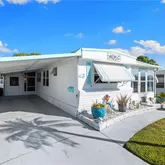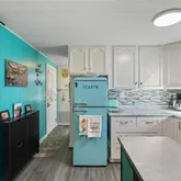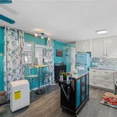 Inside, an open living, kitchen, and dining space showcases Taj Mahal marble countertops, new coastal luxury vinyl plank flooring, and a retro-modern Galanz fridge + freezer combo. New AC ductwork and added insulation beneath...Welcome to 43 Enchanting Way. A charming, coastal-inspired retreat in the heart of Naples’ vibrant 55+ community lifestyle. Updated in 2023 and thoughtfully designed for comfort and ease, this 2-bed, 2-bath home blends modern finishes with that relaxed Florida feel buyers love.