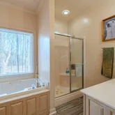 - Interior Features: Ceiling Fan(s), Commode Room, Double Vanity, Eat-in Kitchen, High Ceilings, Pantry, Primary Downstairs, Walk-In Closet(s)