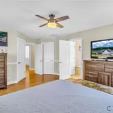 - Interior Features: Bedroom On Main Level, Ceiling Fans, Dining Area, Jetted Tub, Kitchen Island, Main Level Primary, Walk In Closets