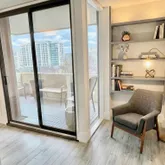 Step into an open, light-filled layout with eastern exposure that fills the space in natural light. The living area flows seamlessly to a private balcony—perfect for morning coffee or evening relaxation–a separate bedroom area, an updated kitchen with gas cooking and stainless appliances, and expansive closet space with two generous closets for ample storage. One garage parking space is included.