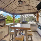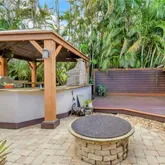 - Exterior Features: Screened Lanai/Porch, Built In Grill, Built-In Wood Fire Pit, Outdoor Kitchen, Gazebo