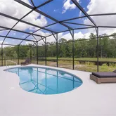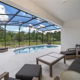 Step through the sliding glass doors to the screened-in lanai to the pool which overlooks conservation space and a pond, offering added privacy and a natural setting. The extended lanai includes a covered area suitable for outdoor seating and dining.