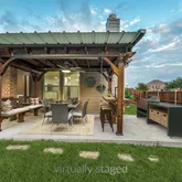 - Exterior Features: Covered Patio/Porch, Rain Gutters, Lighting, Outdoor Living Center, Storage