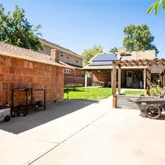 The private backyard offers a covered patio, newly installed sod, and two separate detached 1-car garages, plus additional off-street parking.