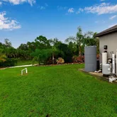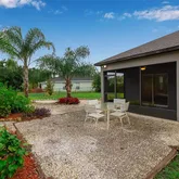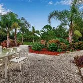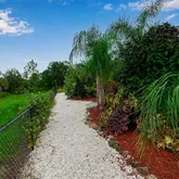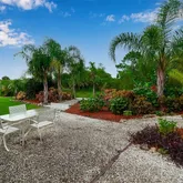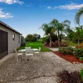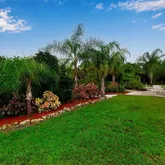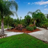 The spacious primary suite is a relaxing retreat, featuring tray ceilings, a large walk-in closet, and an ensuite with dual vanities and a walk-in shower. Step outside to an extended paver patio, perfect for outdoor dining or enjoying Florida's sunshine. Mature landscaping, palm trees, and a lush green lawn create a serene and private backyard oasis. The backyard feels like your own nature preserve with a walking path and mature foliage. Truly a nature lovers private retreat.