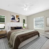 - Interior Features: Ceiling Fan(s), Coffered Ceiling(s), Eating Space In Kitchen, Primary Bedroom Main Floor, Solid Wood Cabinets, Split Bedroom, Stone Counters, Thermostat, Walk-In Closet(s), Window Treatments