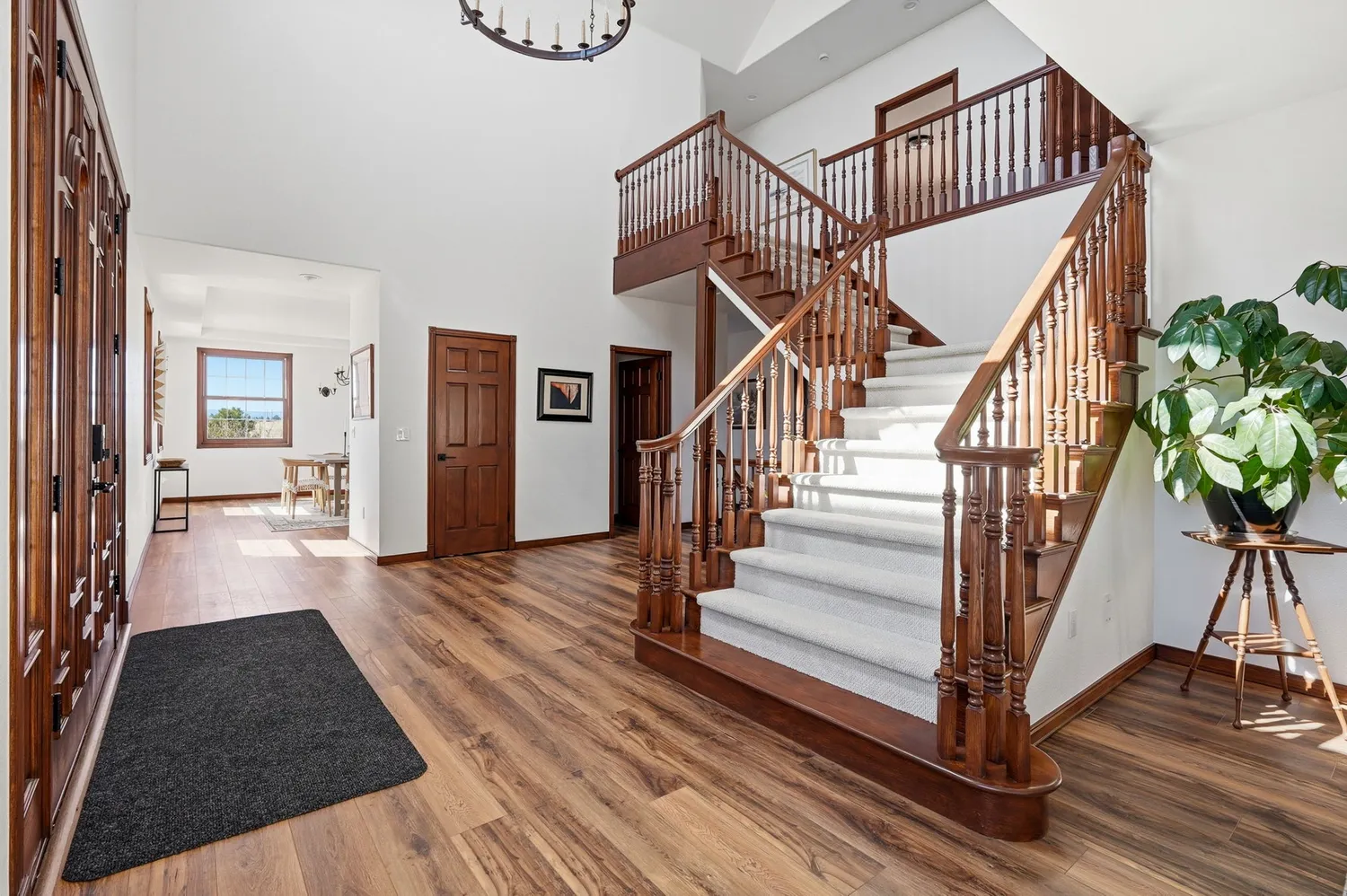 The fully remodeled brick residence features five bedrooms, a dedicated office, and thoughtfully updated interiors throughout, including new flooring, lighting, plumbing fixtures, and a reimagined kitchen and baths. A dramatic two-story entry is anchored by a statement chandelier from Aspen artist Kevin Clarke, complete with a motorized lift for ease of maintenance. Radiant in-floor heat and multiple living spaces provide both comfort and functionality.