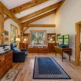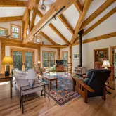 - Room Features: Vaulted Ceiling,Beams,Built-Ins,Dining Area,Wood Stove,Hardwood Floor