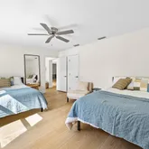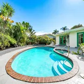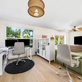 The primary suite is a private retreat with a large walk-in closet, a modernized en-suite bathroom, and French doors that open to the tropical backyard oasis with pool. The...Stunning 3BR/2BA residence in East Boca with NO HOA! Updates include a brand-new kitchen featuring custom white shaker cabinetry with plentiful storage, exquisite white granite countertops, and premium LG appliances. The expansive living area features luxury vinyl plank flooring that flows seamlessly throughout the entire layout.