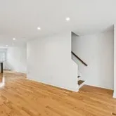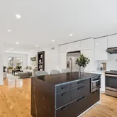 - Room Features: Countertop(s) - Solid Surface, Flooring - HardWood, Island, Kitchen - Electric Cooking, Lighting - LED, Lighting - Recessed, Living/Dining Room Combo