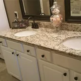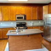- Kitchen Features: Cabinets Stain, Kitchen Island, Other Surface Counters, Pantry, Pantry Walk-In, Stone Counters, View to Family Room