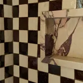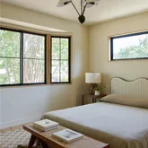 A beautifully curated kitchen where craftsmanship and materiality take center stage. Custom white oak cabinetry is complemented by Calacatta Viola marble slab. Italian appliances, Raw brass light fixtures, Noguchi lights, a custom hood range, and handcrafted Zia Tile backsplash elevate the space, while Roman clay walls add warmth and organic texture. A dedicated coffee station completes the kitchen with both elegance and intention. Family Room: Designed for gathering, the family room features large windows that flood the space with natural light and offer a seamless connection to the backyard. A cozy indoor gas fireplace adds warmth and comfort, making this an ideal space for both relaxing and hosting. Bathrooms: This house offers two showers, a freestanding tub provide flexibility and comfort, while custom Viola marble sinks adds sculptural elegance. Zia terrazzo flooring grounds the space, paired with Roman clay and microcement wall finishes that bring warmth, softness, and modern sophistication. Bedrooms: Each bedroom offers a comfortable layout with abundant natural light from large windows