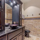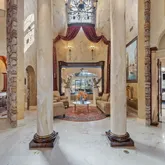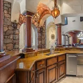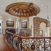 The home is built with Insulated Concrete Forms (ICF), offering incredible strength and insulation superior to standard frame construction. Inside, the home feels like a fairy tale, featuring a 30-foot domed ceiling with twinkling starlight, spectacular artisan woodwork throughout, and a private elevator leading to a personal theater.