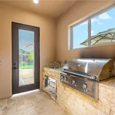 - Appliances: Gas Water Heater, Double Oven, Warming Drawer, Free-Standing Range, Water Line to Refrigerator, Ice Maker, Range Hood, Refrigerator, Barbecue, Gas Range, Disposal, Dishwasher, Microwave, Indoor Grill
