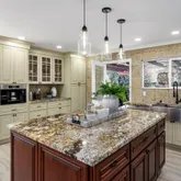 - Kitchen Features: Breakfast Bar, Stone Counters, Dishwasher, Double Oven, Eat-in Kitchen, Disposal, Gas Range/Cooktop, Kitchen Island