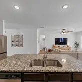 - Kitchen Features: Breakfast Bar, Cabinets Other, Solid Surface Counters, Eat-in Kitchen, Kitchen Island, Pantry, View to Family Room