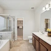 - Interior Features: Double Vanity, Granite Counters, Kitchen Island, Kitchen Family Room Combo, Bath In Primary Bedroom, Pantry, Soaking Tub, Separate Shower, Tub Shower, Ceiling Fans, Kitchen/Dining Combo, Loft, Programmable Thermostat