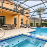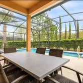 Private screened-in pool and spa with pool loungers