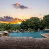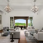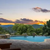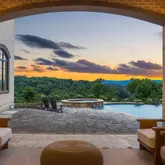 The stunning backyard oasisācomplete with a heated infinity-edge saltwater pool, jacuzzi, fire pit, and fully equipped grilling areaāis easily accessible from the living room, family room, and several other main living spaces, creating a perfect flow for entertaining or relaxing while enjoying panoramic hilltop vistas. Several fireplaces are featured throughout the home, including in the main living areas and under the covered patio for cozy indoor-outdoor living.