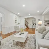 Upon entry, discover a gracious living room flooded with light, centered around a fireplace, ideal for gatherings and relaxation. Step through the arch to a formal dining room...Gracious elegance meets grand living in this beautiful end-of-row townhouse in historic Foxhall Village. Offering approximately 3500 square feet of bright and inviting living space, this four-level home features five well-proportioned bedrooms and four bathrooms, providing plenty of room for a large household and entertaining