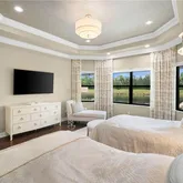 - Interior Features: Built-In Cabinets, Coffered Ceiling, Custom Mirrors, Foyer, Laundry Tub, Pantry, Smoke Detectors, Surround Sound Wired, Tray Ceiling, Volume Ceiling, Walk-In Closet, Window Coverings, Cable Prewire